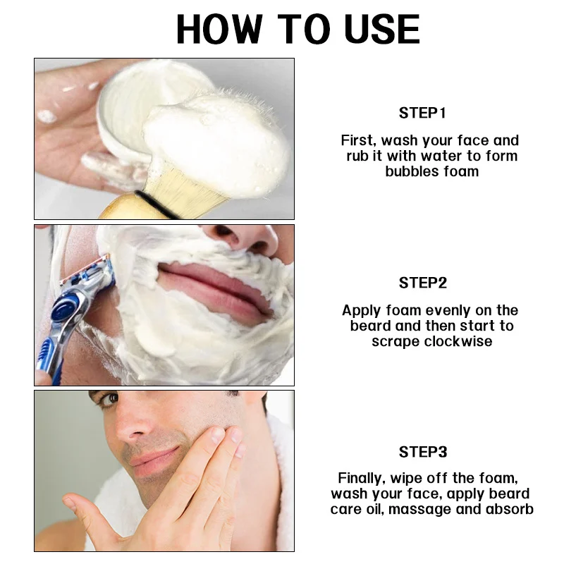 - Cleanse: Wash your face and rub the beard area with water to form a rich bubble foam.