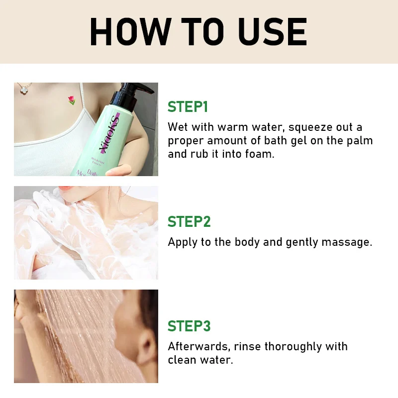 - Massage: Apply the foam to your entire body and gently massage to cleanse.