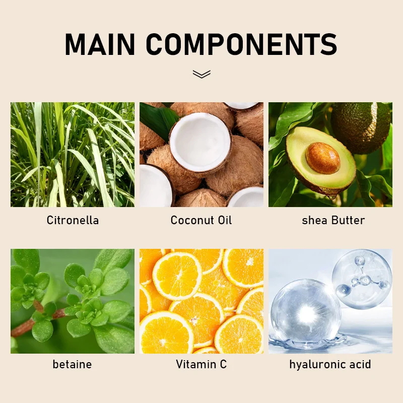 - Citronella & Coconut Oil: Natural extracts for refreshing and nourishing the skin barrier.