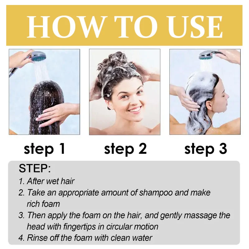 2. Take an appropriate amount of shampoo and work into a rich, creamy foam.