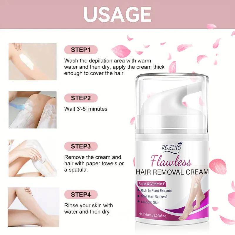 - Rose Extract: Provides a soothing fragrance and helps calm the skin during the hair removal process.
