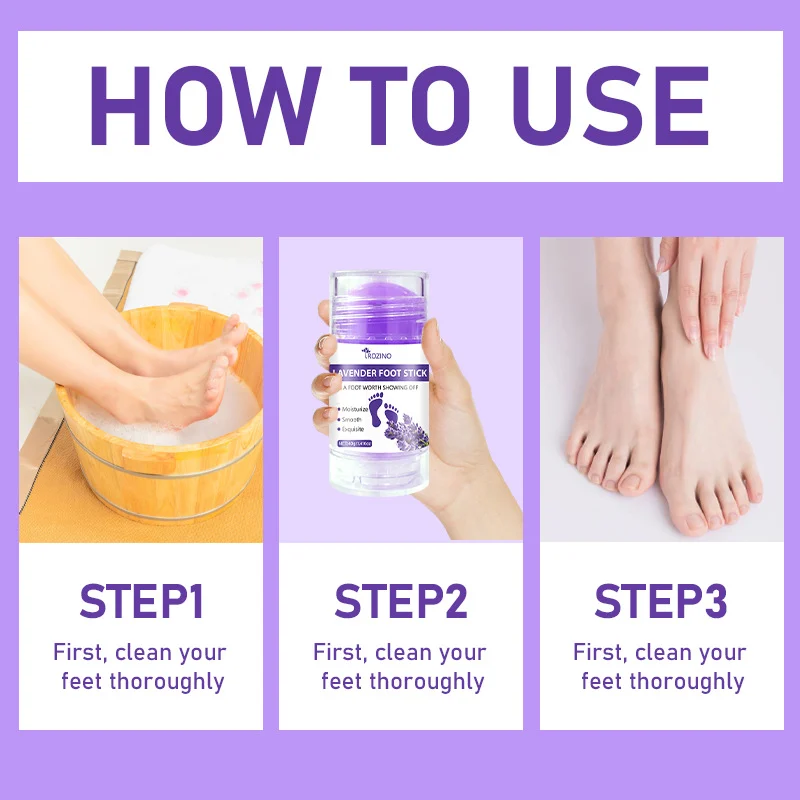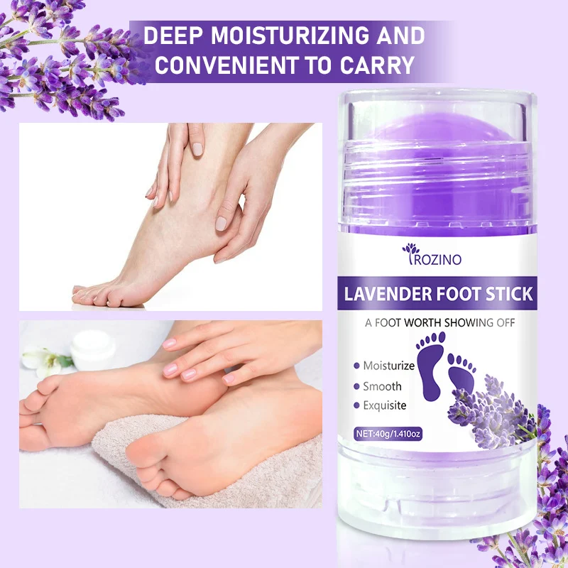 Experience the ultimate relief for tired, dry feet with the ROZINO Lavender Foot Stick. Designed for those struggling with cracked heels and rough skin, this convenient balm stick provides intense hydration and repair without the mess of traditional creams. Its soothing lavender scent offers a spa-like experience with every application.