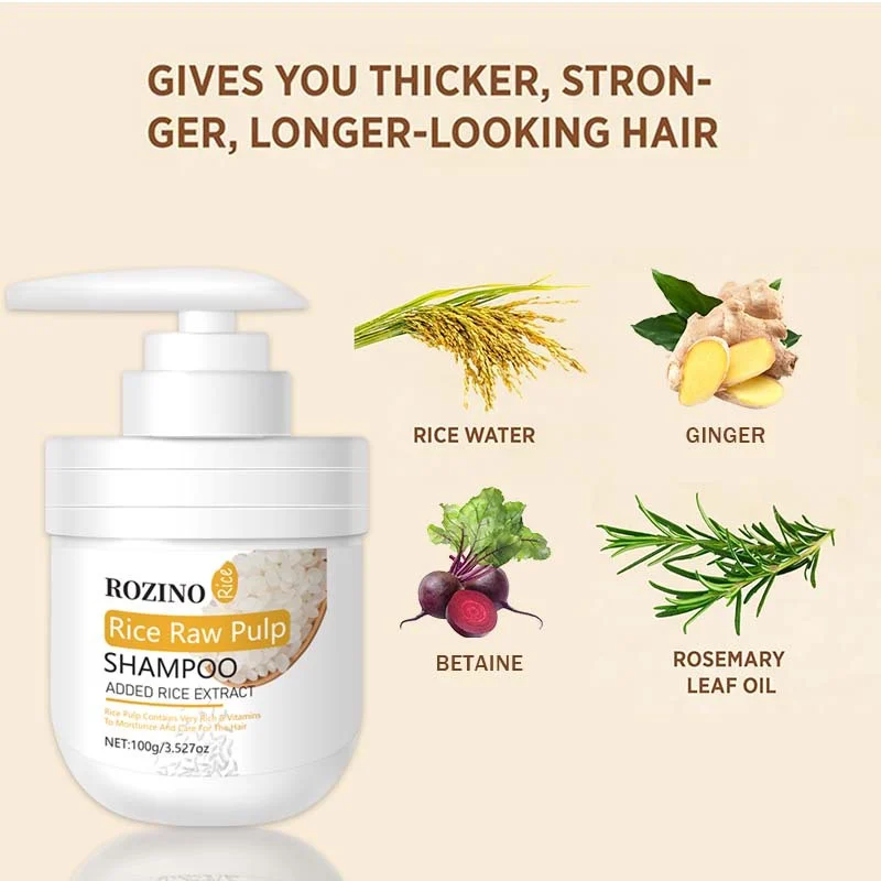 Unlock the ancient secret to luscious, strong hair with ROZINO Rice Raw Pulp Shampoo. Specifically formulated to address oily scalps and thinning hair, this shampoo leverages the power of fermented rice water to deeply cleanse while providing essential nutrients. Experience a refreshing, itch-free scalp and hair that feels thicker, stronger, and noticeably longer.