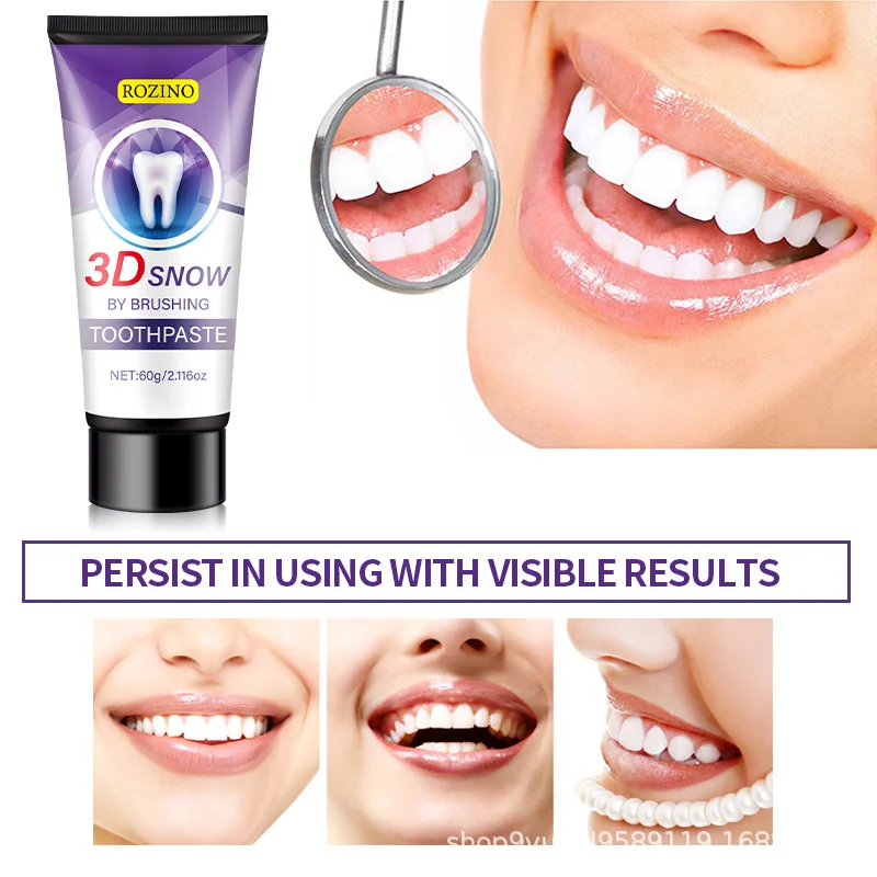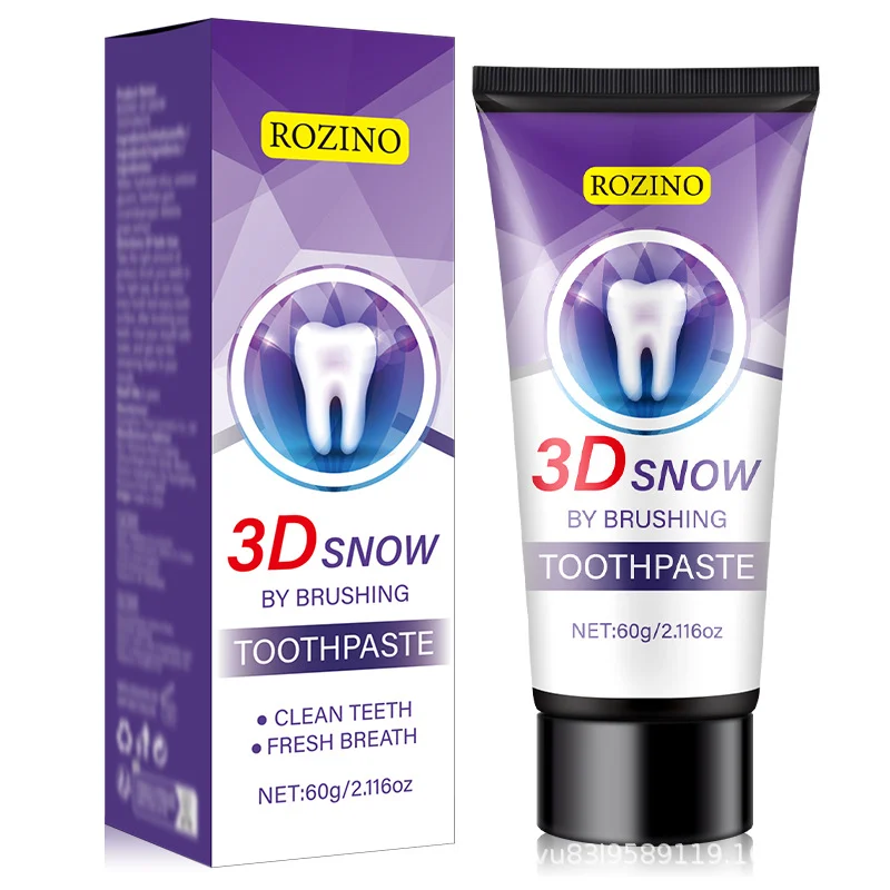 Transform your daily oral care routine with ROZINO 3D Snow Purple Toothpaste. Formulated with natural coconut essence and advanced color-correcting technology, this toothpaste goes beyond simple cleaning. It creates a dense foam that penetrates deep between teeth to remove residue and neutralize yellow tones, revealing a brighter, more confident smile. Mild, non-irritating, and packed with refreshing power, it’s your secret to long-lasting fresh breath.