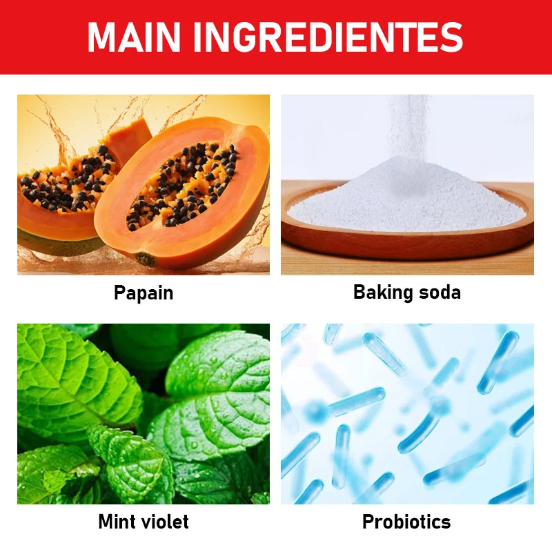 - Papain: An enzyme derived from papaya that helps dissolve protein stains on teeth.